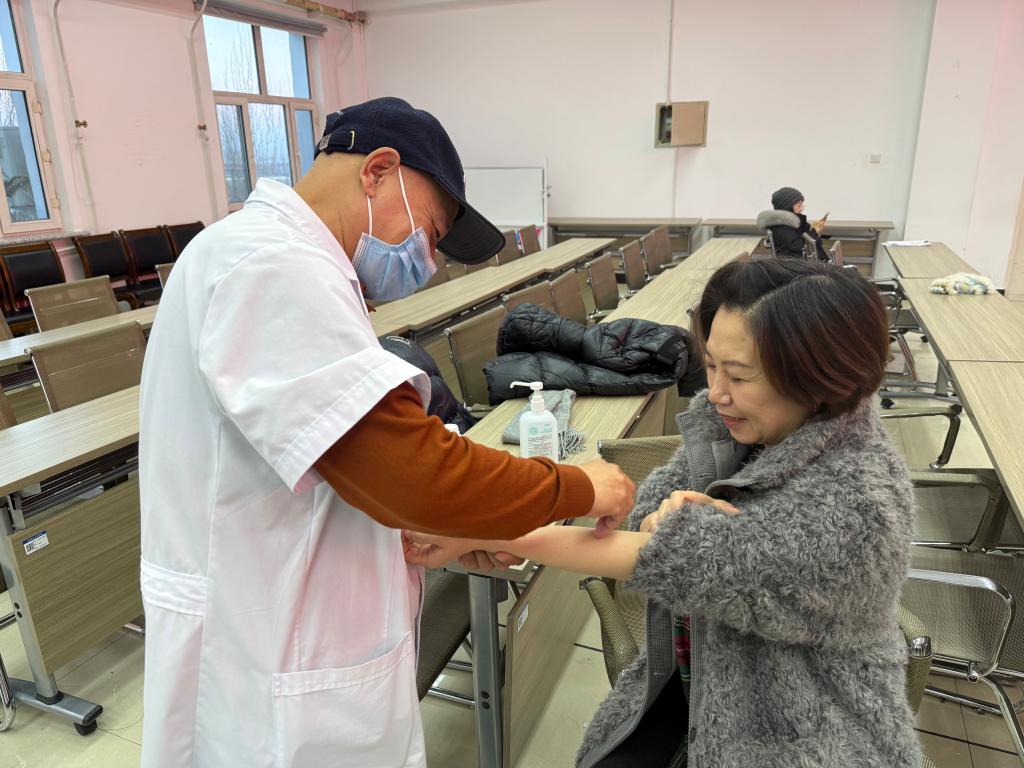 活动特邀新鹤城社区卫生服务中心主任、主治医师张国军担任主讲与义诊医师。张国军医生毕业于黑龙江中医药大学中西医结合临床专业,从事临床工作17年,具备丰富的中西医结合诊疗经验,擅长治疗糖尿病、冠心病、高血压、慢性胃炎等内科常见病,以及颈肩腰腿痛、失眠、面瘫等疾病的针灸与针刀治疗。活动现场,张医生围绕“冬季常见疾病预防与中医调理”主题展开宣讲,内容涵盖合理膳食、规律作息、中医体质辨识及日常保健方法,语言严谨,条理清晰,受到现场师生广泛关注。