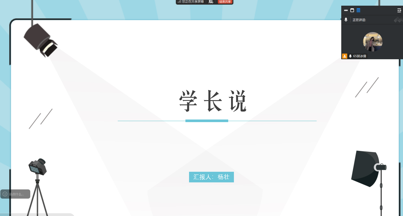 郭冰倩老师组织的“优秀学长说”系列分享会又开始了,这次聚焦医疗健康领域,邀请上海医院专家杨壮学长回校分享。郭冰倩老师先说明了活动目的,即借校友经历助学生了解行业、规划生涯。杨壮学长介绍了所在医院的发展情况,该院成绩优异、实力强劲。他还解答了医院人才选拔标准问题,介绍了上海医院治疗技术前沿突破,给学弟学妹提出五点成长建议。郭冰倩感谢杨壮学长并勉励同学,此次分享会让学生了解医院、把握技术趋势与职业前景,为职业发展提供了指引。