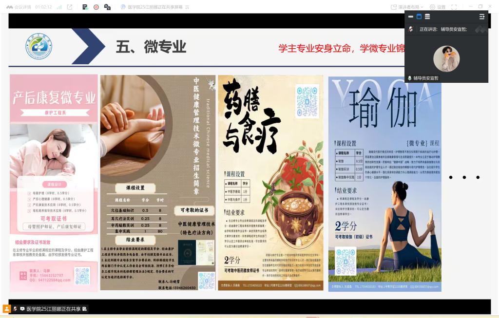 辅导员安宣哲老师就微专业设置和返校安排进行说明。他介绍了产后康复、中医健康管理等多个微专业方向,帮助学生拓展技能、提升就业竞争力。在返校方面,他明确了3月1日报到、3月2日正式上课,提醒学生按时提交社会实践作业并做好补考准备。他还强调了学生安全管理,特别是大一新生需防范网贷风险。