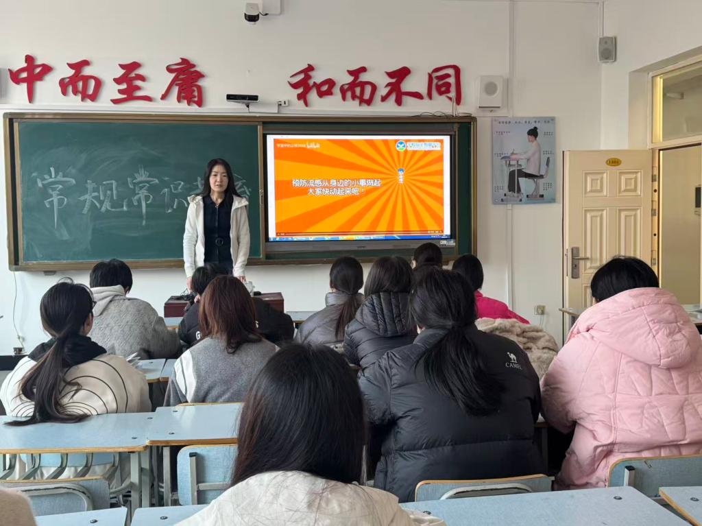 会议伊始,李妍老师结合春季气候特点与校园环境,系统梳理了常见疫病的防控要点。李妍老师首先分析了春季易发疾病的类型,如流感、诺如病毒感染、水痘等,详细讲解了各类疾病的典型症状,如发热、咳嗽、呕吐、皮疹等,帮助同学们快速识别健康风险。在预防措施方面,老师强调“细节决定健康”,提出“四勤”原则:勤洗手,尤其在接触公共物品后、餐前便后,勤戴口罩,前往教室、图书馆等人员密集场所时)、勤通风(每日至少开窗通风2-3次,每次不少于30分钟,勤消毒,定期清洁课桌、手机等高频接触物品。