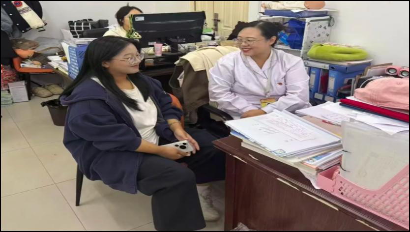 在学生关怀方面,李岩老师将责任融入日常。她常与学生面对面交流,深入了解学习生活情况,及时解答困惑、提供帮助。2025年,生涯学生白晓明突发急性肠胃炎,得知消息后,她第一时间赶往医院看望。在急诊护士静脉穿刺多次未成功、学生痛苦不堪的紧急时刻,李岩老师凭借10年临床护理经验,沉着操作,一针穿刺成功完成采血,为后续治疗争取了时间,也减轻了学生的痛苦。
