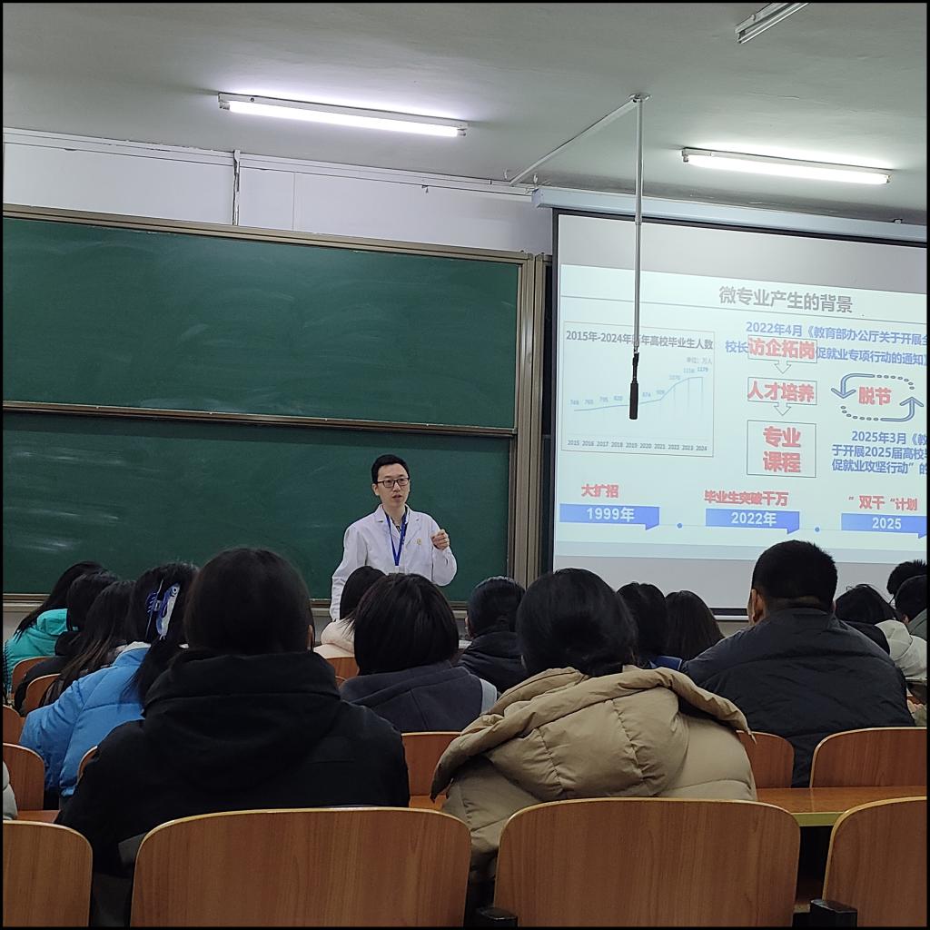 2025年11月,参与组织了微专业宣讲会,向学生详细介绍微专业的培养目标与就业前景,提升了学生对新兴交叉学科的认知度,展现了其致力于提升学生综合素养的教育情怀。并基于数智化的《集中实践》课程教学创新实践典型案例,刊登在2024-2025学年专业实践学期教学简报。