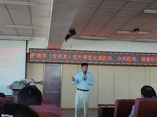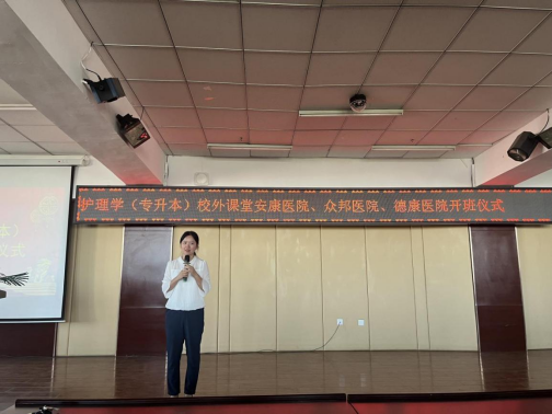 9月14日,健康与护理系护理学(专升本)校外课堂安康医院、众邦医院、德康医院开班仪式在图书馆501会议室报告厅举行。学校理事长曹勇安、健康与护理系主任郭玲玲、护理学(专升本)2022级学生辅导员米新及全体专业教师参加。专业负责人单大海主持开班仪式。