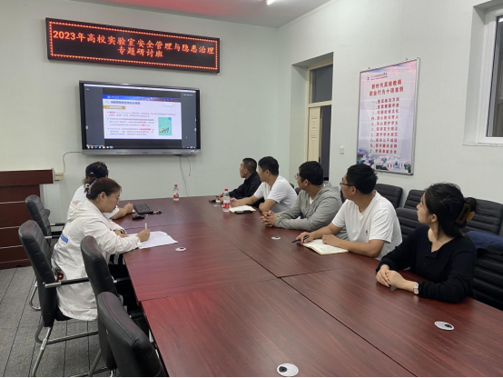 为切实增强高校实验室安全管理能力和水平,确保安全隐患及时消除,杜绝实验室安全重特大事故发生,营造安全和谐的教学、科研环境。同时也为了交流各校在安全管理与隐患排查方面的有益经验。2023年8月5-6日,齐齐哈尔工程学院教务处实践教学科组织参加实验室安全系列培训之--2023年高校实验室安全管理与隐患治理专题研讨班。此次培训采取线上腾讯会议的形式开展,来自全校各系实验室:薛文晔、何轩皓、国贺阳、杨伟哲、李阳、边宇卓、王奇共7名实验技术人员在1#2104会议室集中观看学习。