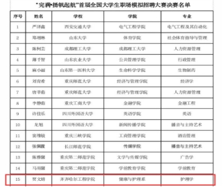 5月29日至31日,“完满起航·赢在职场”首届全国大学生职场模拟招聘大赛总决赛在重庆移通学院,我校护理学(专升本二年制)226班贾文靖从24万余参赛学生中脱颖而出,并从30名选手中获得了全国总决赛优秀奖。