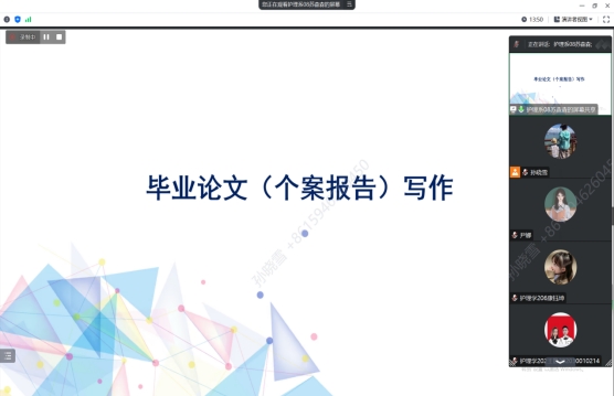 2023年419日晚,护理学专业与护理学(专升本)专业联合组织毕业论文(个案报告)指导会议。会议由专业负责人孙晓雪主持,毕业论文(个案报告)指导教师及助教参加。会议中首先由苏森森老师以专业的角度针对毕业论文(个案报告)的撰写内容、相关要求及注意事项进行详细介绍随后各位指导教师根据指导过程中出现的问题与苏森森老师进行沟通交流;最后孙晓雪老师强调此次毕业论文(个案报告)的重要性,希望各位指导教师能够认真指导,争取顺利通过