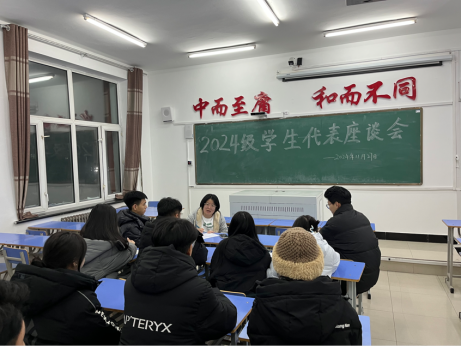 会议伊始,于晶老师简要介绍了召开此次座谈会的目的,旨在搭建起师生沟通的桥梁,深入了解同学们入学后的学习情况以及对校园生活各方面的感受。随后,学生代表们纷纷踊跃发言,就2024级的学习情况进行了细致分享。有的提到课业负担重,PPT制作较多,是否可适当减少;还有的表示排课合理性有待加强,如某一天的课程数目较多,几乎满课,某一天课程却很少,建议每天的课程均匀分布;个别课程间存在撞课现象,如大学英语与其他课程。而在谈到对学校公共设施的建议时,现场更是讨论热烈。大家指出南区宿舍个别楼层无热水,北区宿舍水质不好;1号教学楼进出较为拥挤,影响安全,建议将其他的两个门在上下课高峰期同时开放。于晶老师认真倾听并记录下每一条建议,承诺会将同学们的心声及时反馈给相关部门,争取尽快改善。