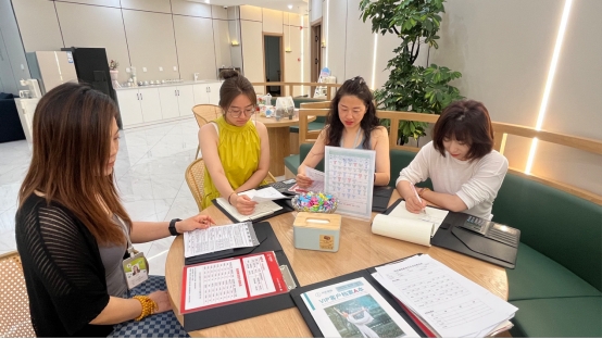活动伊始,教培导师刘晓懿阐述本次集体备课对提升教学质量、增强品牌竞争力的重要性,让老师们明确方向。在热烈的讨论环节,老师们各抒己见。王萍和刘丙霞老师结合丰富教学经验,分享不同难度级别体式在大课中的合理占比;刘美丽老师从会员反馈出发,提出体式编排要注重趣味性与挑战性结合;陈凯悦老师从时间把控角度,精确到每个体式及调息、休息环节的时长。大家还共同探讨了如何根据课程主题巧妙选择音乐,让音乐为课程氛围加分。