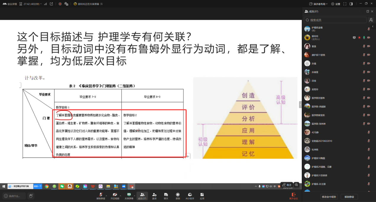 通过此次会议,各位教师再次明确了关于开课说明的编写原则和注意事项,经过此次结合实际问题进行的有针对性地、细致地讲解,教师们会结合专业集群、产教融合、护理专硕建设发展需要认真进行修改和完善,形成高质量的开课说明,也会提高编写其他教学材料的质量,助力教师教学能力水平提高。