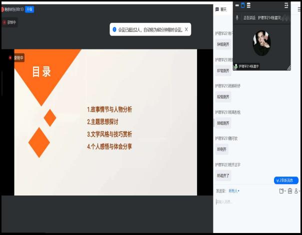 三、大三同学汇报读书分享:大三同学分别制作了PPT进行读书分享汇报,内容丰富,汇报精彩,得到老师的表扬。
