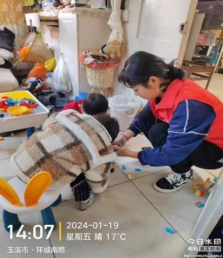 刘浩桢同学跟随社区人员带着玩具及水果对留守儿童进行了“新年送温暖”活动。儿童的健康成长离不开家人的陪伴与关怀,“留守儿童”更是需要多加关注的对象。