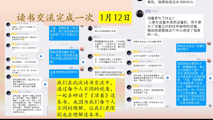 在读书交流中,HLX-244组通过不同的视角,共同研读书籍《活着》,也因为每个人不同的理解,各自有了不同的感悟。