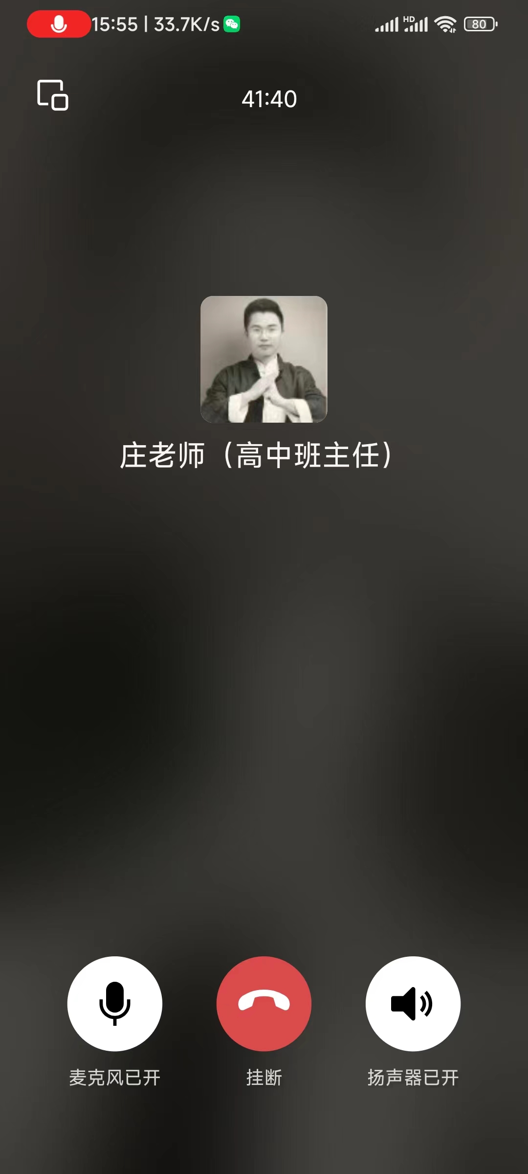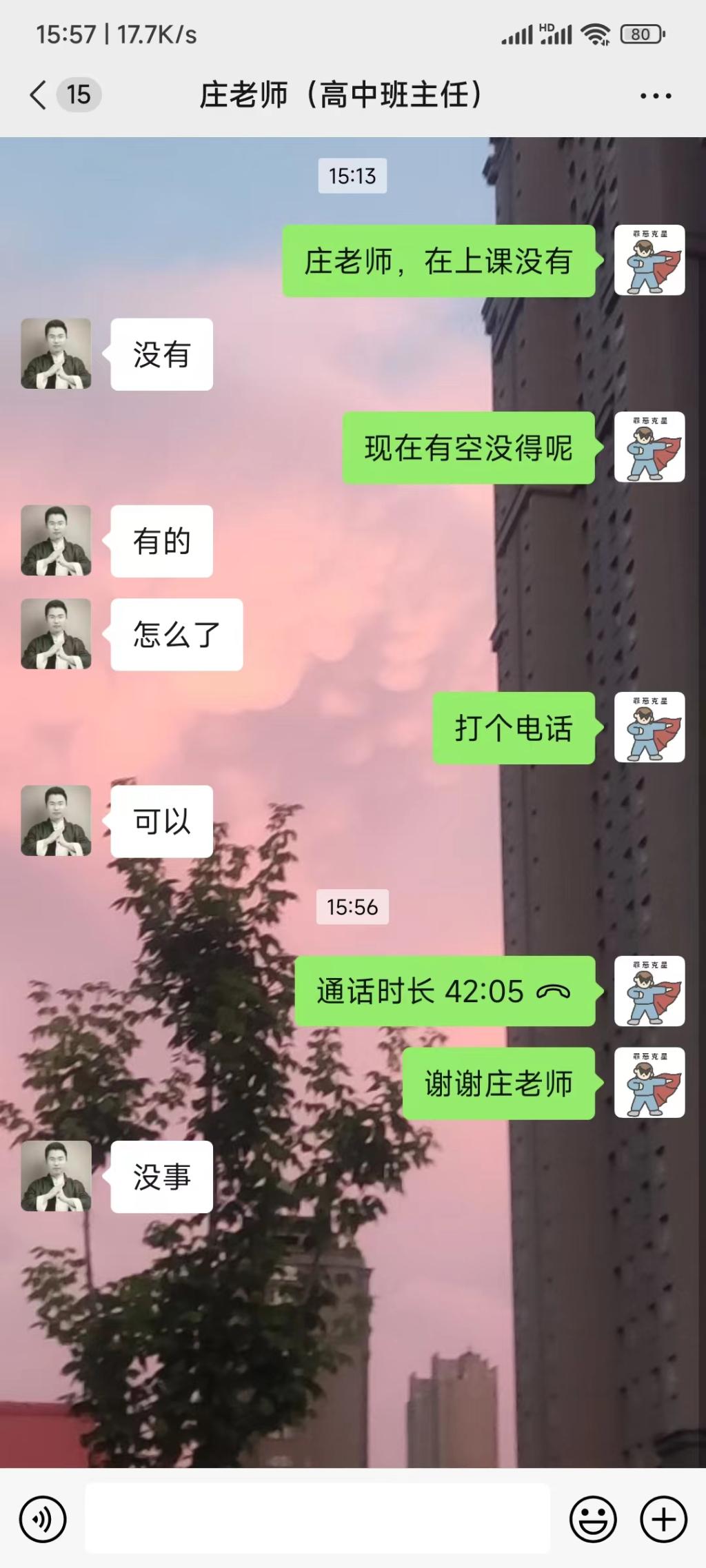 由于不在高中所在地,1月13日15时,和高中班主任庄老师进行了一场线上的母校回访。