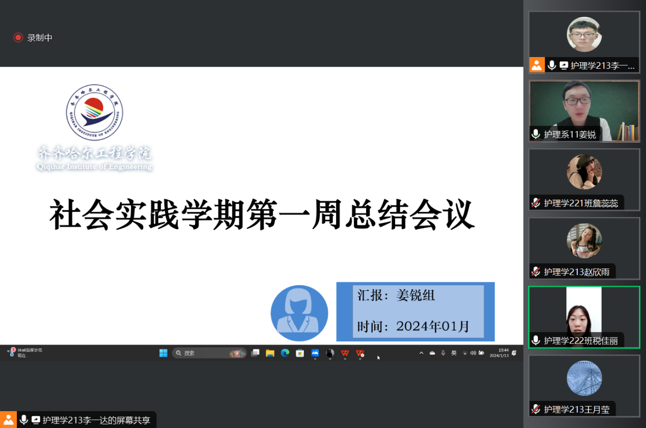 2024年1月13日,在腾讯会议召开2023-2024学年度社会实践学期第一周总结会议,会议由姜锐老师主持,34名学生参会。