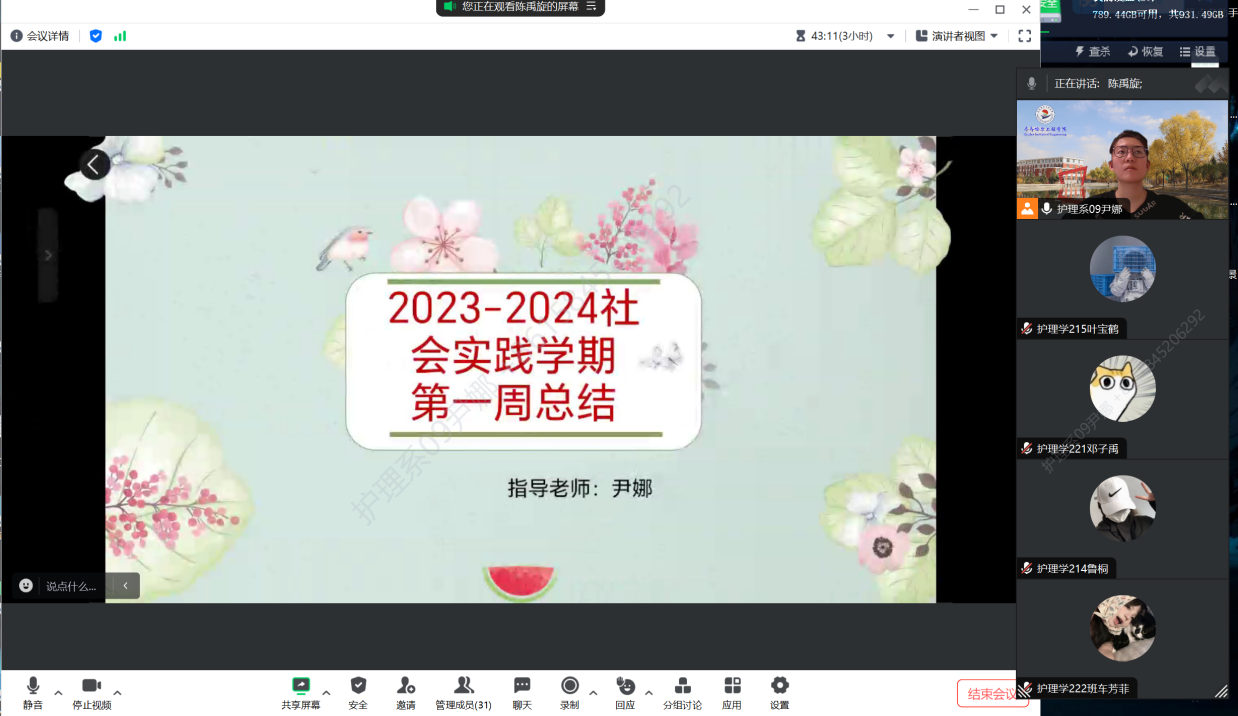 为了能够更好地开展社会实践学期,进一步跟进学生任务完成情况,2024年1月13日19:00,生涯导师尹娜在腾讯会议组织召开第一周总结会议。会议由生涯导师尹娜主持,HLX-065——072组全体成员参加。