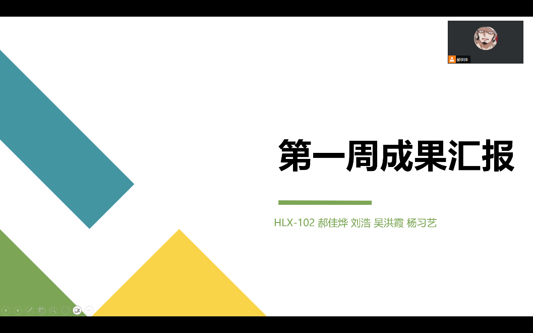 为推进社会实践学期进展,明确各位学生的实践任务,HLX-102组于2023年1月13日上午12时在腾讯会议进行了第一周总结。会议由郝佳烨主持,刘浩,吴红霞,杨习艺全员参加。