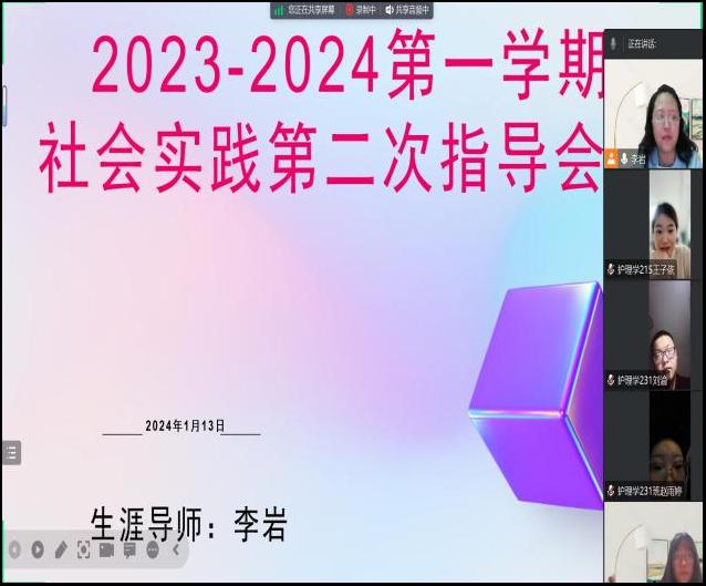 在2024年1月13日晚8点,李岩老师进行了2023-2024第四学期社会实践第二次指导会议的召开。会议的主要内容分为四个部分:1.对第一周任务完成情况的总结。2.完成情况过程中遇到的问题。3.抽取同学对母校回访进行阐述。4.及布置下一周的任务。