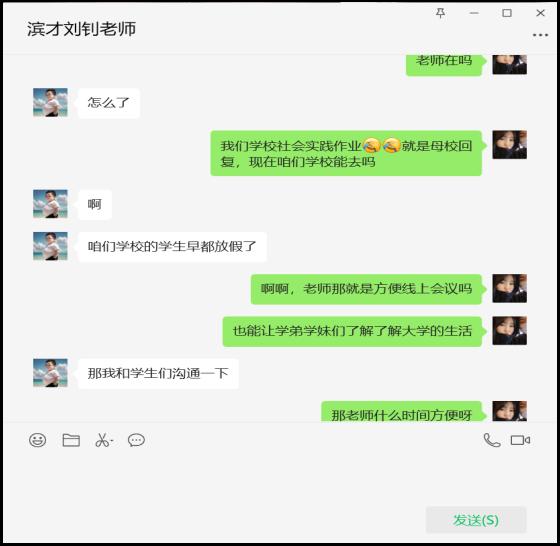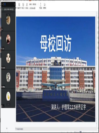 由于母校放假原因,齐正宇同学和母校老师沟通后决定采用线上形式进行母校回访,向曾经的班主任老师了解学校的近况,也向老师简单的介绍了大学的生活,步入大学之后学习更多的是靠自律而不是老师督促,在会议中学弟学妹们分别表达了自己的愿望,并向齐正宇同学请教了一些学业上的问题,齐正宇细心的给学弟学妹们传授了一些高三的学习方法等,耐心的解决学弟学妹提出的问题,并祝愿学弟学妹们在学习上更上一层楼,都能考上自己理想的大学。