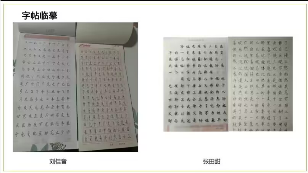 HLX-044组字帖临摹和书写4人各完成7页,志愿服务4人各完成1次,选修项目居家健康运动八段锦小组4人各完成一次,全部完成学习通安全教育学习。
