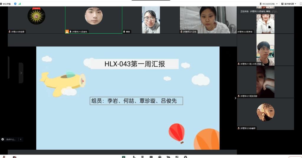 2024年1月12日晚21:00,社会实践学期HLX-043、044组组织召开第一周总结会。本次会议由护理学213班吕俊先主持,生涯导师曹慧及HLX-043、044成员参会。