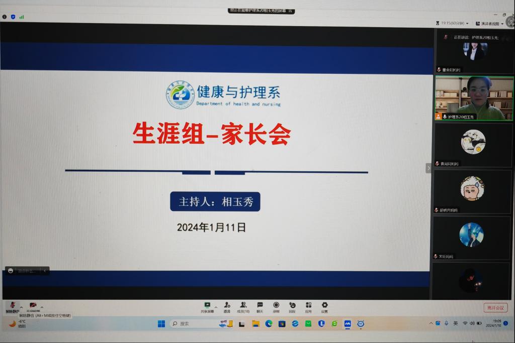 在2023年的1月11日下午,相玉秀老师为所带的18名生涯学生家长组织了一次重要的线上会议。这次家长会的目的是推动家校间的紧密合作,让广大家长了解学生在社会实践学期中的活动内容和进展,同时,也希望能加强家长与学校的沟通,共同关注学生的全面成长。