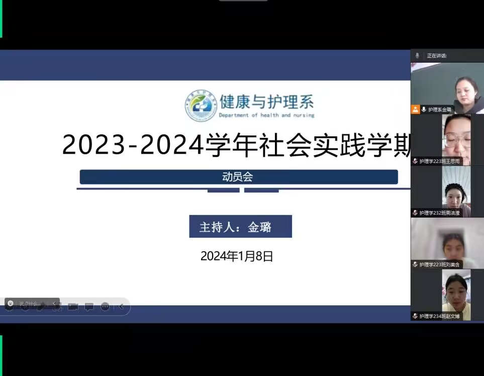 会议最初,金璐老师为同学们介绍了健康与护理系2023-2024学年度的社会实践学期,给大家讲述了社会实践学期的必修与选秀内容,为各年级分别讲述了相应任务。在会议最后,金璐老师给大家答疑机会,为大家解答了各种疑问,并下发各小组任务。