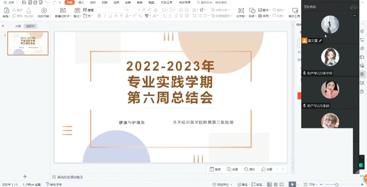 2023年7月30日,齐齐哈尔医学院附属第三医院带队老师景文慧老师通过线上视频会议的方式,带领同学们进行第六周总结。