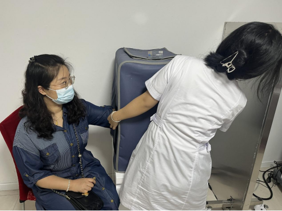 当天按排班表学生全员在岗,工作状态佳。张欣瑞、高雨桐、马鑫蕾同学在骨密度检查室,已经能够单独进行骨密度检测。三名学生为老师进行了骨密度检查,请社区带教老师进行操作点评。社区带教老师对学生们进行了表扬与认可。带教老师说,我们的实习生在工作中积极主动,认真负责,吃苦耐劳,非常优秀。