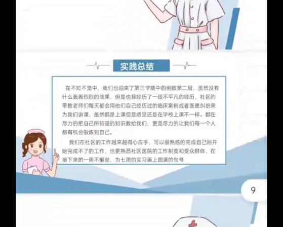 其次,这是我们距离实习的倒数第二周了,在社区的实习工作越来越得心应手了,可以很熟练完成之前完成不了的工作了,也更熟悉社区医院的工作制度和受众群体,为以后的工作中做了很大的铺垫。