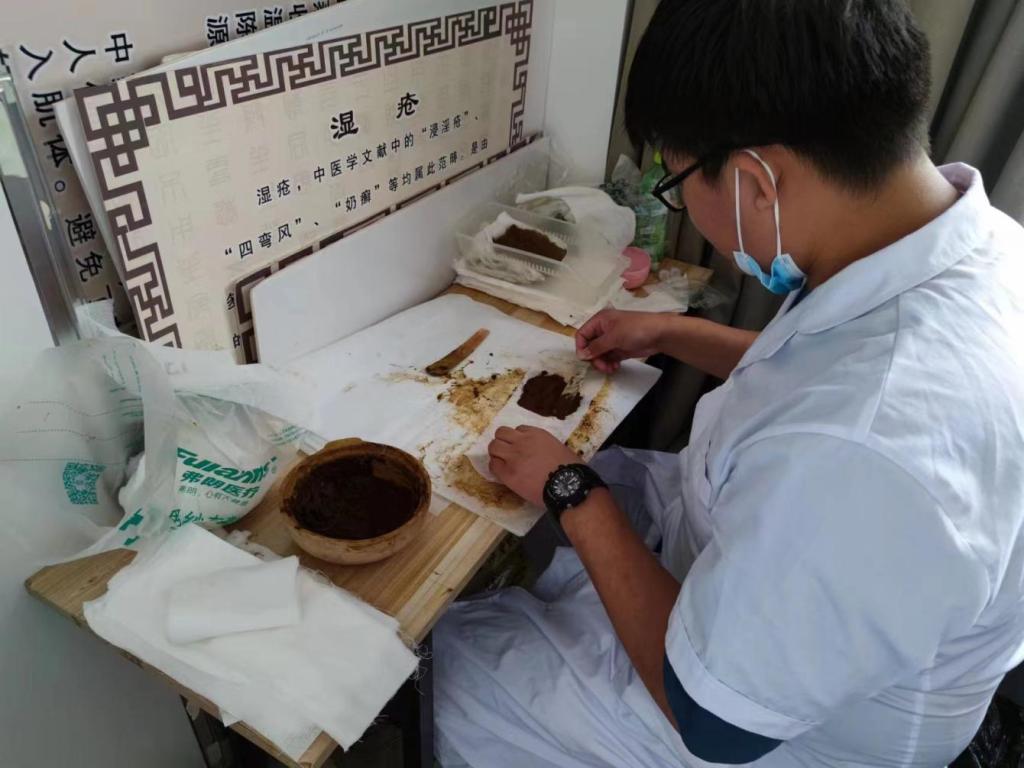 甘景绪在变态反应科进行实习,在这个科室的主要病人都是因为真菌或者病毒感染引起的皮肤病,或者是由自身过敏引起的皮肤病,主要工作是遵医嘱为患者进行抹药,抹药时需要戴口罩手套进行涂抹,以此防止感染,还有为病人进行导药,同时还认识到了许多中药材,因为制作导药贴的药物是中药材,带教老师为我们讲解了大部分中药材可以治疗的疾病,混合使用可以产生怎样的效果等。