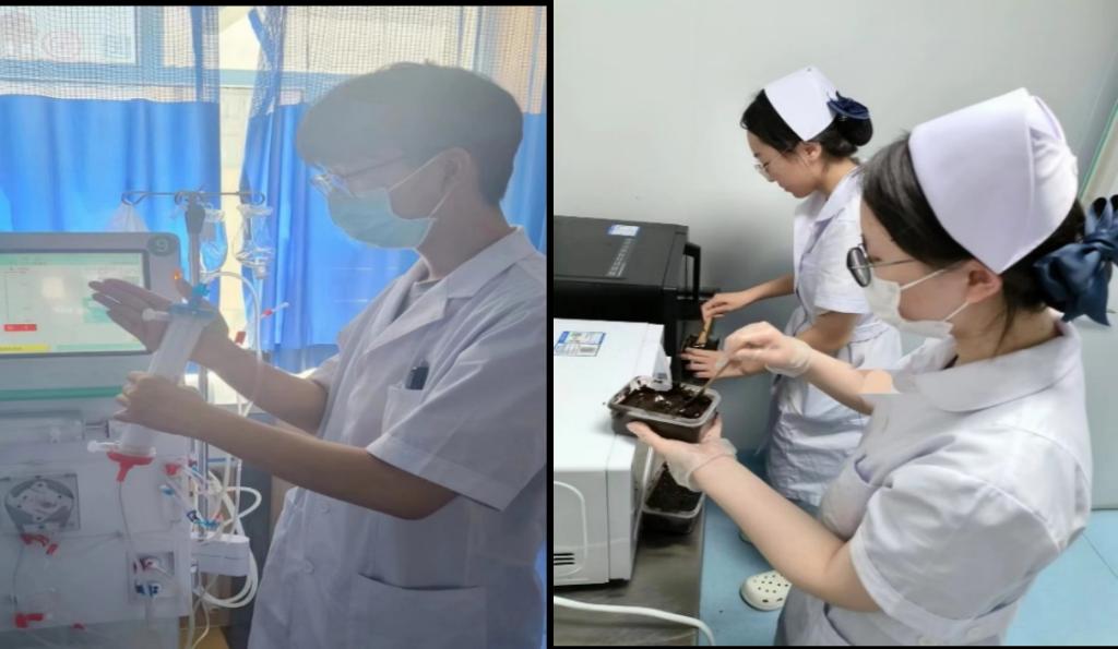 首先,了解一下透析室的同学们吧,大家都已学会生命体征测量、记录、血液透析管路安装、预充管路、管路拆卸、血液透析机管路巡管、血滤插管、管路排液,透析机消毒等。其次,在内科实习的同学,如今已学会了给患者静脉输液、换药、采血和配药等,以及在电脑上绘制体温单等。最后,在康复科的同学学会了拔针、拔罐,为患者热药进行热敷疗法,起药等等。如此看来,各位同学们实习的收获是满满的,进步非常大。