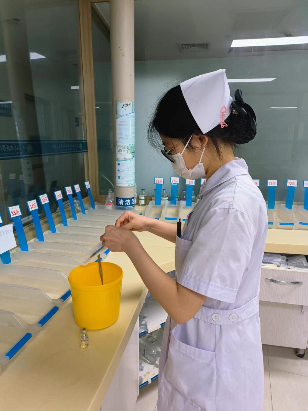 这是第三学期专业实践实习的第五周,同学们已经熟练掌握了实习护士的日常岗位工作。司钰千同学在内分泌一科室实习,在该科室待的时间较长已经能熟练帮助护士姐完成工作。每天进行静脉输液和生命体征的测量,但感觉自己还是有所不足的。这周带教老师给她讲解了胰岛素笔的使用,她上手调试了一下,收获很多,希望下周能亲手给患者进行操作。吕洪鑫同学在消化内科室进行实习,经过这三周熟悉科室,他已经了解了科室每班的大致工作内容。像新病人入院时需要给患者做的基础四测,引导病人前往病房,向患者介绍科室的基本环境、以及每天查房、打针等,给患者进行教育宣教和健康指导。还学到了很多课本上没有学到的知识,像留置针如果回血过多应该如何处理,扎针水平也在逐渐提高。杨盛艳同学在心内五科室实习,在科室里的日常工作是每天到科室后检查留置针、吸氧管补满足够的数量,然后给治疗车备盘、备输液器,跟着带教老师给各病房患者进行静脉输液。还有的患者需要注射肝素钠注射液、做头孢等药敏试验、推西地兰或者速尿剂,新入院的患者需要采血,每次操作完后回到处置室会讲解刚才操作过程中的错误点。在带教老师的指导下,她成功完成了一位患者静脉留置针的穿刺。经过五个周的实习,同学们更加能面对真实的护理临床工作中的各项实践操作,在接下来的实习周期中将会表现得更加熟练。