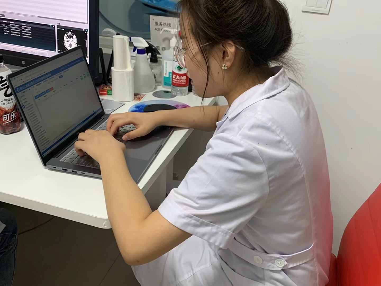 由第一天的拘谨,对一切充满好奇,到现在的按部就班,循序渐进,在这个过程中,我成长了很多,也充实了自我。学习CT影像扫描过程中,带教老师会很细心的讲解操作步骤,会耐心的给我讲解注意事项,例如患者在做肺部扫描时需要摘掉自身电极片、摘掉金属饰品等。同时老师也会根据图像信息教我如何识别所患疾病,会及时提醒注意防护,带好口罩。实习过程中我们小组成员都虚心学习,工作非常热情,认真负责,遇到不懂的地方会及时的去询问学习,态度端正,赢得了带教老师的一致好评。