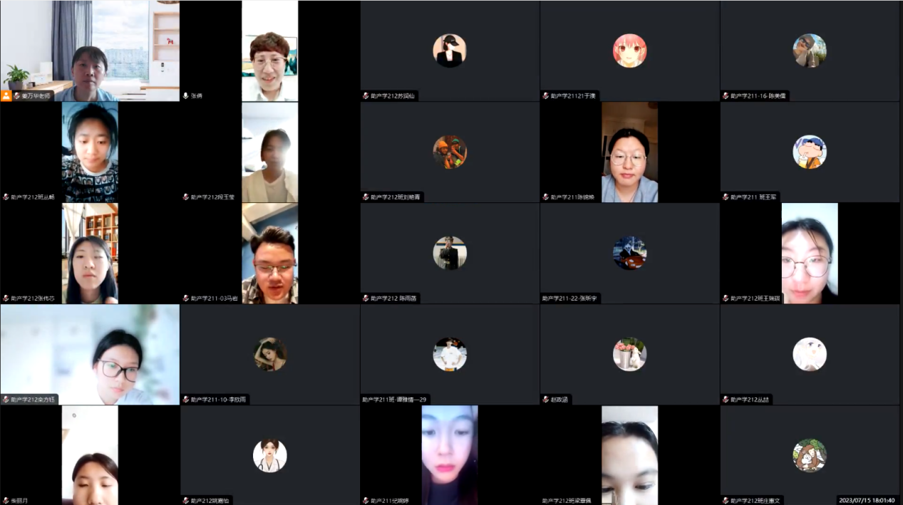 2023年7月15日晚18:00,张倩和姜万华老师老师联合召开助产学21级自主实习第周总结会,会议以线上腾讯会议的形式开展。参会的成员包括助产学21级自主实习的29名同学。