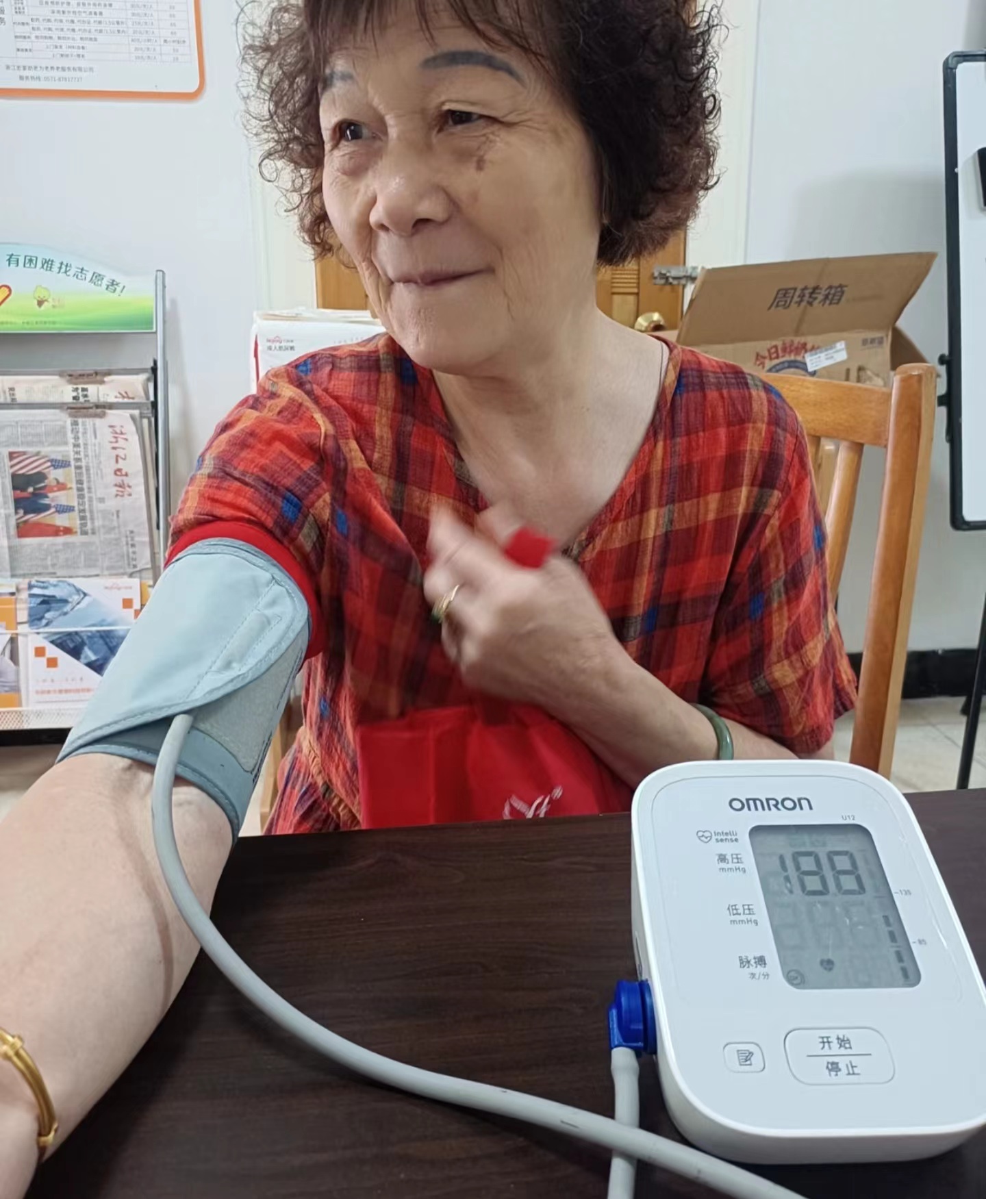 本周实践进行了轮换制,由于正处于暑假期间有很多老人的孙子孙女将来看望老人,前台工作繁忙,接待任务繁重,所以将我们每人进行了轮换制度,每天都会有一人去前台帮忙接待。前台工作就是对新入院的老人进行血压测量、体温检测、表格整理,最后送入不同的房间,对于来看望老人的家属,我们将进行信息登记、接待等工作。