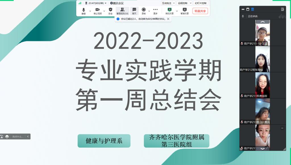 2023年6月25日,齐齐哈尔医学院第三附属医院带队老师景文慧老师通过线上视频会议的方式带领同学们进行第一周总结。