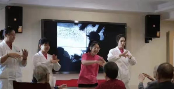 每天的工作就是给老人带来温暖的陪伴,刚开始来到养老院的时候还显得青涩,局促不安,爷爷奶奶们也会主动跟我们打招呼,一起聊天,会指导他们锻炼身体。