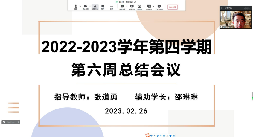 2023年2月26日下午,生涯指导教师张道勇组织召开2022-2023学年第四学期第六周总结会议,会议由张道勇老师主持。