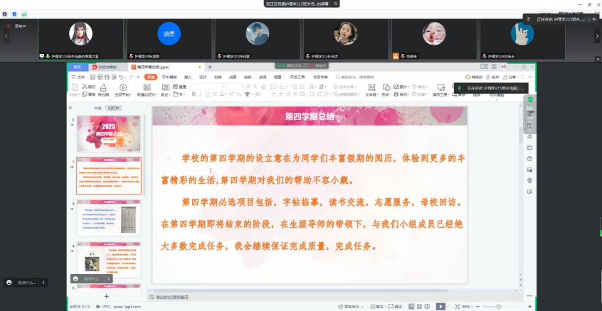 通过此次会议,同学们更加认识自己的不足,会议结束后同学们整理材料,确保材料顺利上交,互相督促尽快完成第四学期收尾工作,保证质量、认真、真实的完成此次第四学期。