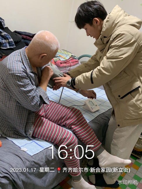 在2023年2月8日李硕同学进行了志愿服务,由于疫情开放了,社区很多地方用不上志愿者,我就在我们社区的一个诊所进行服务,上门为我们社区的老人们进行服务,因为那些老人腿脚不便,诊所就派我们去上门进行服务,我们会给老人们量血压也会为他们打点滴。