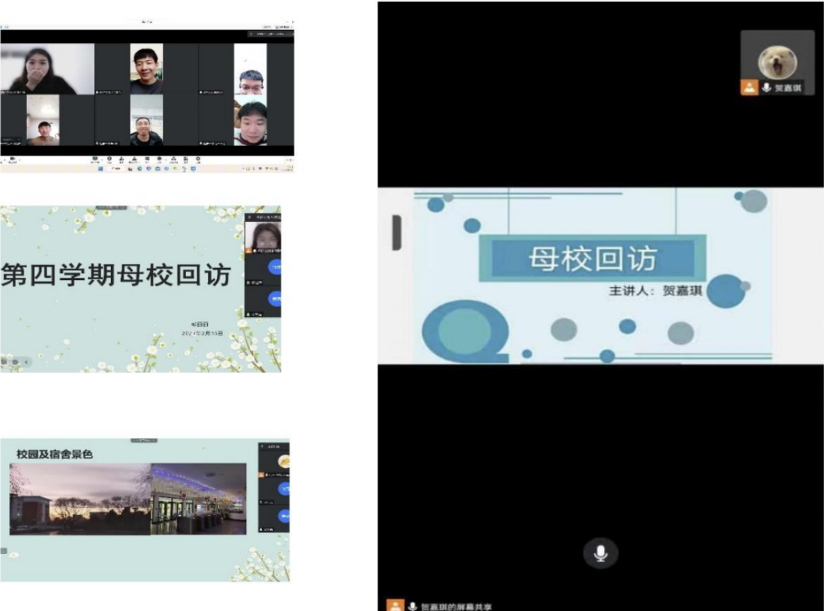 贺嘉琪通过与老师沟通了解到,老师目前的工作依旧繁忙,通过与老师的交谈了解到母校的近况,她也向老师讲解了自己的大学生活并表达了对学弟学妹们的祝福。孟祥娜与母校老师分享了大学生活,向学弟学妹们传授了高中时期的学习经验,对于学弟学妹们的提问也耐心的解答,希望对于他们以后报考大学以及专业有所帮助。彭丽丽为母校的学弟学妹分享了高三的学习经验以及如何充分利用细碎的时间学习,介绍大学的情况以及大学专业助产学的发展前景,让老师和同学们了解了齐工程的校园文化以及多样的大学生活。
