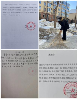 王赫同学于勃利县城西街道友谊社区开展志愿服务,王赫同学在志愿活动期间帮助来社区老人解决问题,帮助老人上下楼梯,虚心学习,获得社区领导一致好评,最后,城西街道友谊社区给予一封表扬信。王术桃同学在社区,进行简单清理工作,例如:清扫院子,擦擦玻璃。虽然工作简单,但却认真干好每一件事,领导们都夸赞不已。进行志愿服务工作后,王术桃同学,用一份志愿服务报道总结志愿服务工作以及感受。