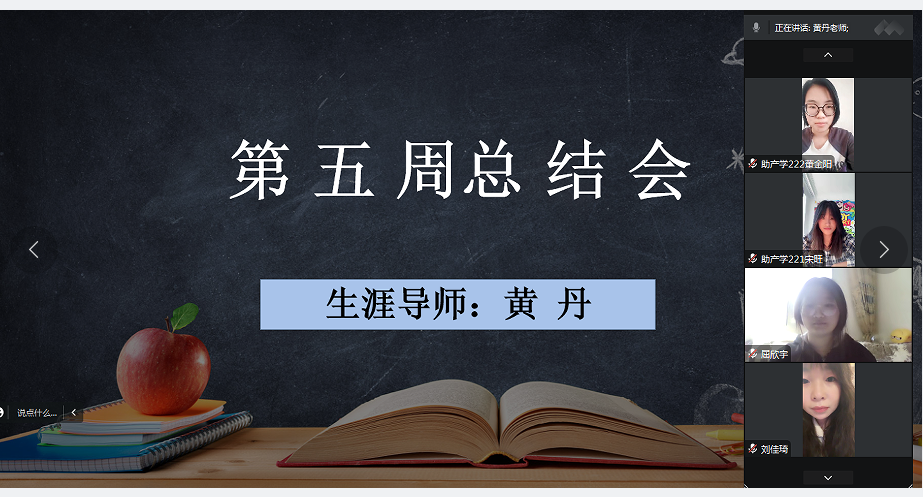 为积极响应第四学期的号召,了解每位学生第四学期完成进度,增强师生之间的交流,促进学生之间的合作,2023年2月19日黄丹老师以腾讯会议形式召开本小组第四学期第五周分享总结会,本次会议由指导教师黄丹主持,生涯小组全体同学参会。