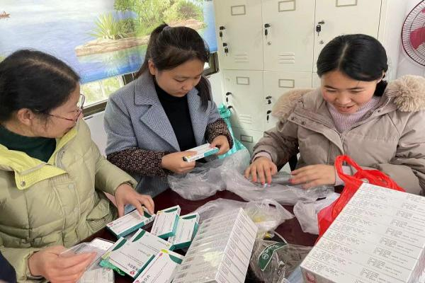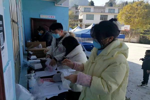 在参与村委会志愿服务时,正处于新冠肺炎疫情的大爆发时期,对于已遭受新冠的我深知其中的痛苦,同时作为一名医学生,我更应该参与此次志愿服务献出自己的一份力。首先,我与村委干部先为名单上的老人装配“健康包”,健康包中有连花清瘟胶囊、布洛芬胶囊、新冠肺炎抗原检测试剂、酒精等基础药物及用品(图一,图二)。大家装配完成后就开始走访自己的名单,到老人家中我们会先询问老人的身体状况,若在询问老人身体状况时发现仍有阳的现象,我们会为老人做抗原检测(图三),然后分发健康包,并告知健康包的使用方法(图四,图五),让老人在生活中多加注意。