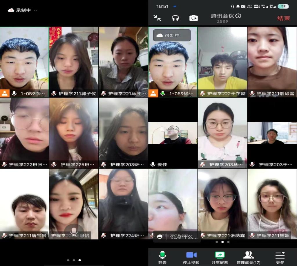2023年1月12日健康与护理系姜佳老师通过腾讯会议对所带4组生涯学生召开了第四学期第四周的总结会议,本次会议由姜佳老师和16名同学参加。