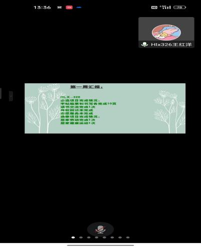 在1月19日由米新老师主持的腾讯会议中,有58名同学参加会议,一共有16组进行汇报了第一周对于第四学期任务完成的情况。由每组其中一位同学汇报整组情况,为了让大家更加清晰明了了解各位同学完成情况,有的组汇报的同学用ppt形式向大家展示。