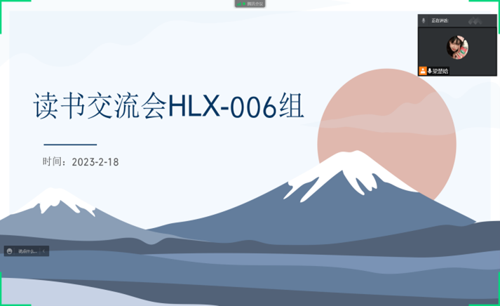 2022年2月18日,HLX-006小组于线上开展读书交流会,小组组员分别分享了假期阅读书籍,并将感悟想法进行汇总研讨。