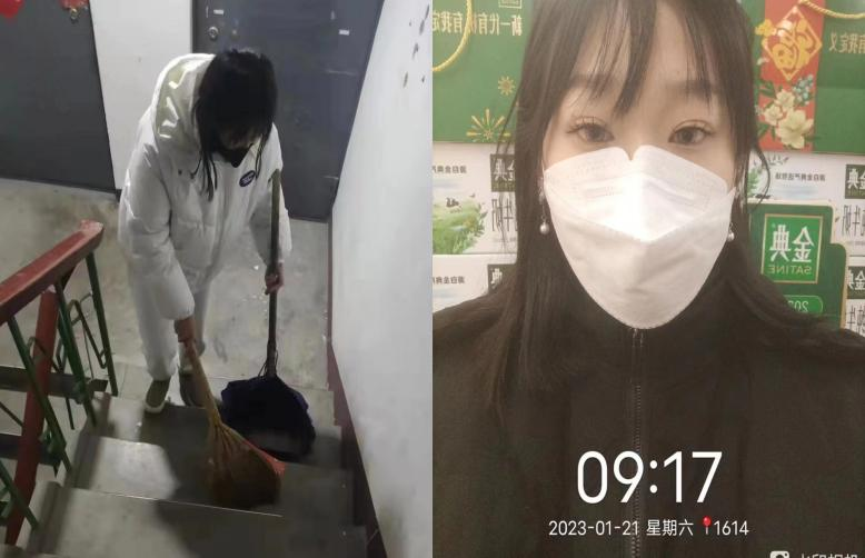 李婉婷同学和陈雨菡同学也分别联系当地社区进行清扫积雪、清除垃圾等志愿服务。为了保障广大居民的出行安全,两位志愿者在上午九点与社区工作人员进行扫雪、清除垃圾活动。清扫积雪和清除垃圾活动的顺利完成,不仅清扫了社区的积雪,方便了居民的出行,而且在一定程度上增强了社会责任感、体现了志愿服务的意义,实现了志愿者为社会服务的人生价值。在未来的日子里她们也会用自己的实际行动回报社会,积极相应号召,做好新时代的新青年。