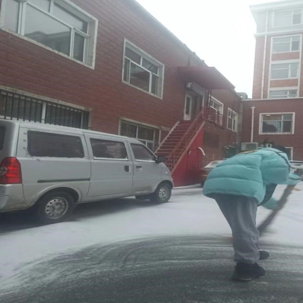 艾硕同学跟随社区进行为居民清雪的志愿服务,帮助城管、环卫工人清理路边积雪和垃圾。