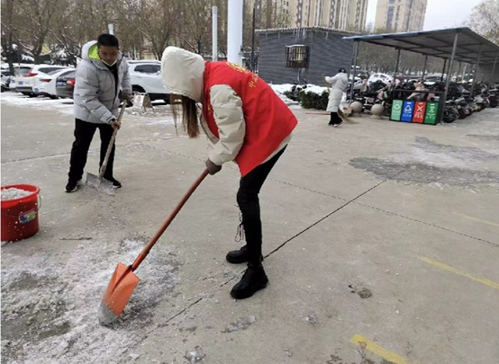 刘莹同学跟社区的人一起扫雪,清除小区里路面上的冰,清理楼道的小广告和垃圾。 在过年之前跟社区的人一起包了饺子,给一些没有子女的独居老人送去,同时到独居老人家里进行走访,看看有什么需要帮助的,还跟社区一起组织了针对老年人的法律常识普及防止受到一些诈骗。